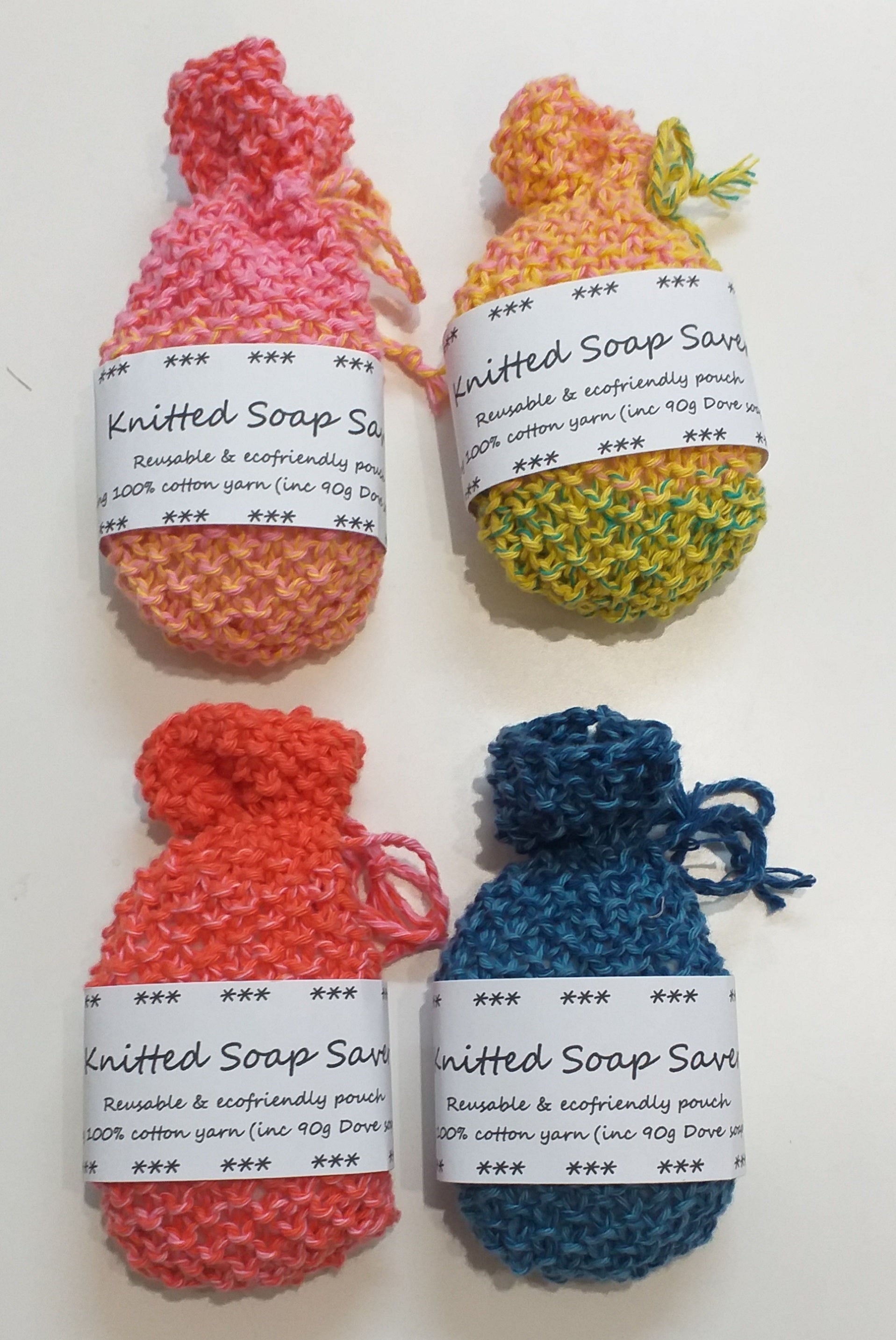 Colourful hand knitted soap savers - ideal for brightening up any bathroom includes soap!
